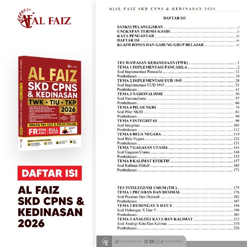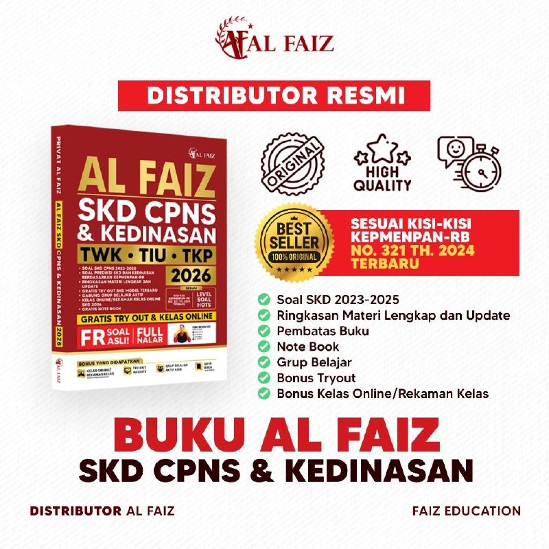 Persiapkan langkah terbaik menuju CPNS dan Sekolah Kedinasan 2026 dengan Buku SKD CPNS KEDINASAN TWK TIU TKP AL FAIZ 2026!